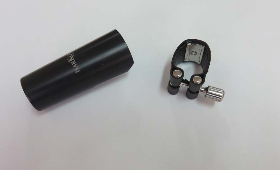 Abrazadera estándar para saxo alto y tenor para boquilla de pasta y metal estandart, cuero sintetico , resonador de niquel , metal de alta calidad y protector de boquilla de fibra sintetica.